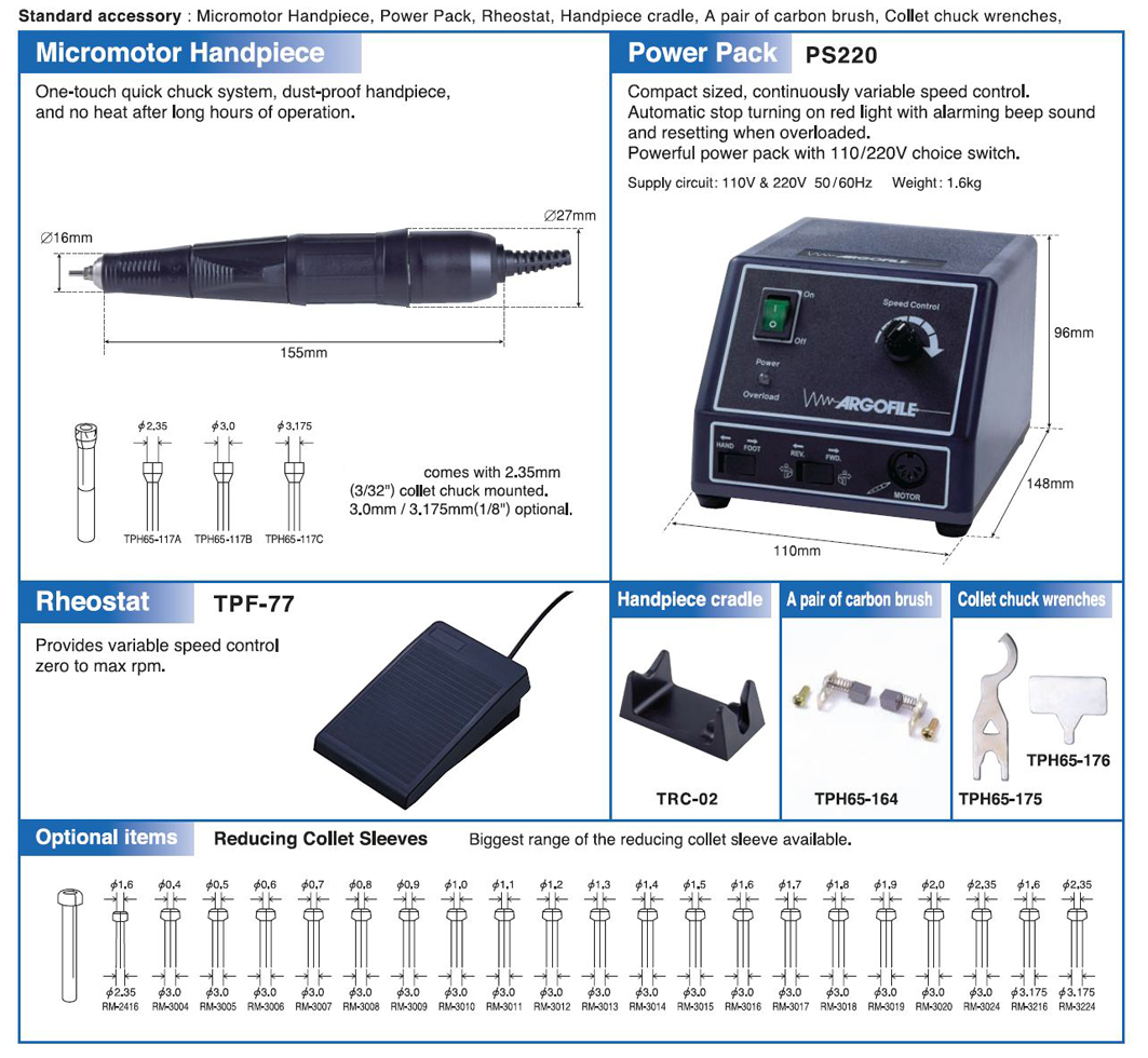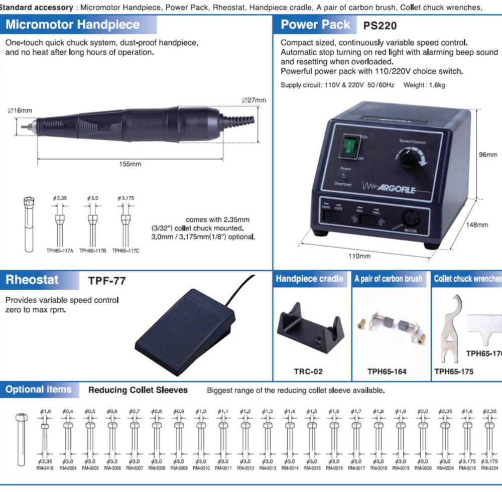 Levereras med PS220 som är en kompakt strömförsörjningsenhet med varvtalsreglering.