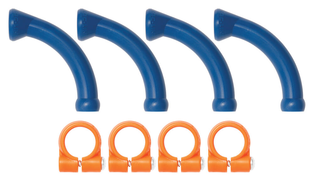Böjda långa byggelement och låsringar 4+4 st 1/4"