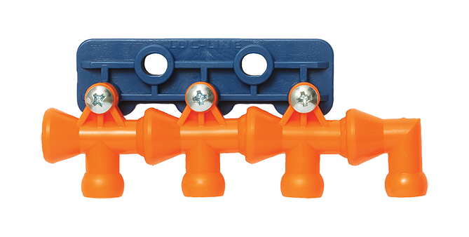 1/4" fast flerförgrening inkl 3 st T-förgreningar, 1 st vinkel, 1 st fästplatta samt 3 st skruvar