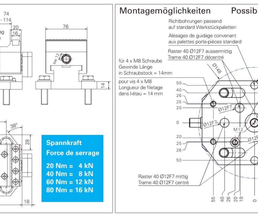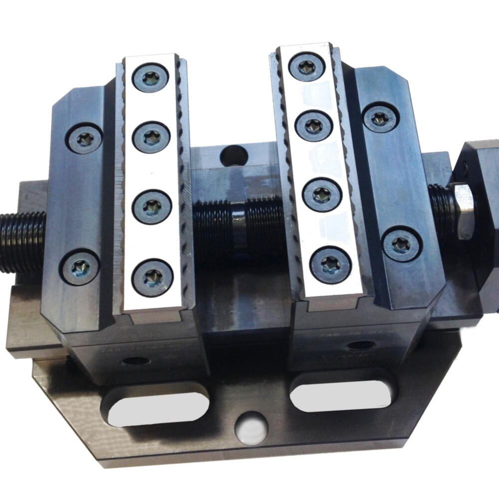 Centrerskruvstycke från schweiziska Vischer & Bolli med högsta precision och hög spännkraft. Hög, stabil och kompakt konstruktion som tillåter bearbetning av arbetsstycket runt om.