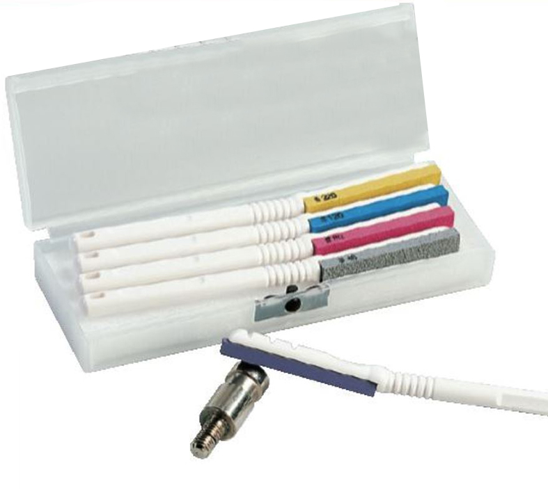 Brynen som lämpar sig för slipning, polering och läppning i de flesta hårda material. Lämpar sig för både torr- och våtslipning/polering. Brynena består av en keramisk slipmassa bunden i en speciell gummiblandning som är jämnt fördelat i bindmaterialet. Är självskärpande och försedda med praktiska handtag för säkert grepp. Set om 5st Kornstorlek i satsen: # 46 (grå) den grövsta # 80 (rosa) # 120 (blå) # 220 (gul) # 320 (lila) den finaste