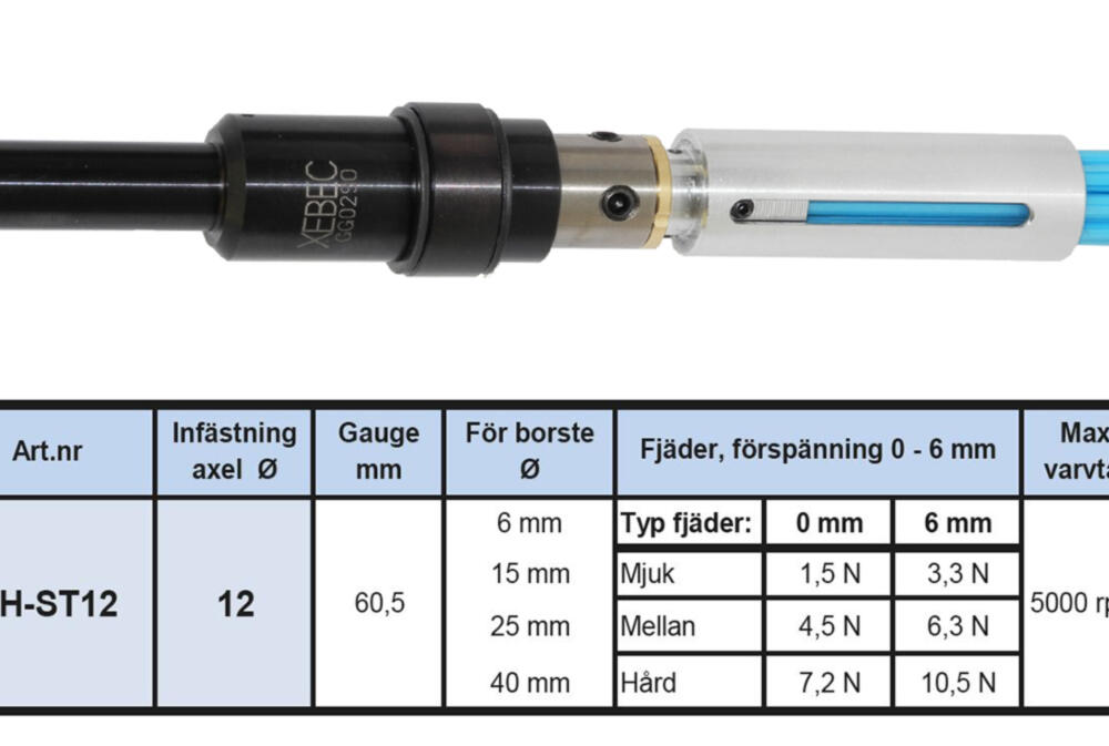 Sliptrycket kan regleras genom byte av fjäder i hållaren (FH-ST12) eller justering av fjäderlängden. Stora möjligheter att finjustera processen. Denna fjäder ger en hårdare förspänning.