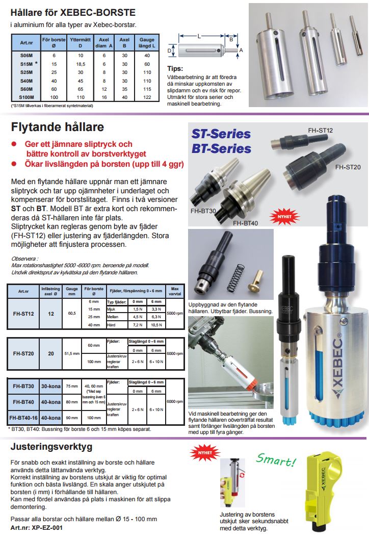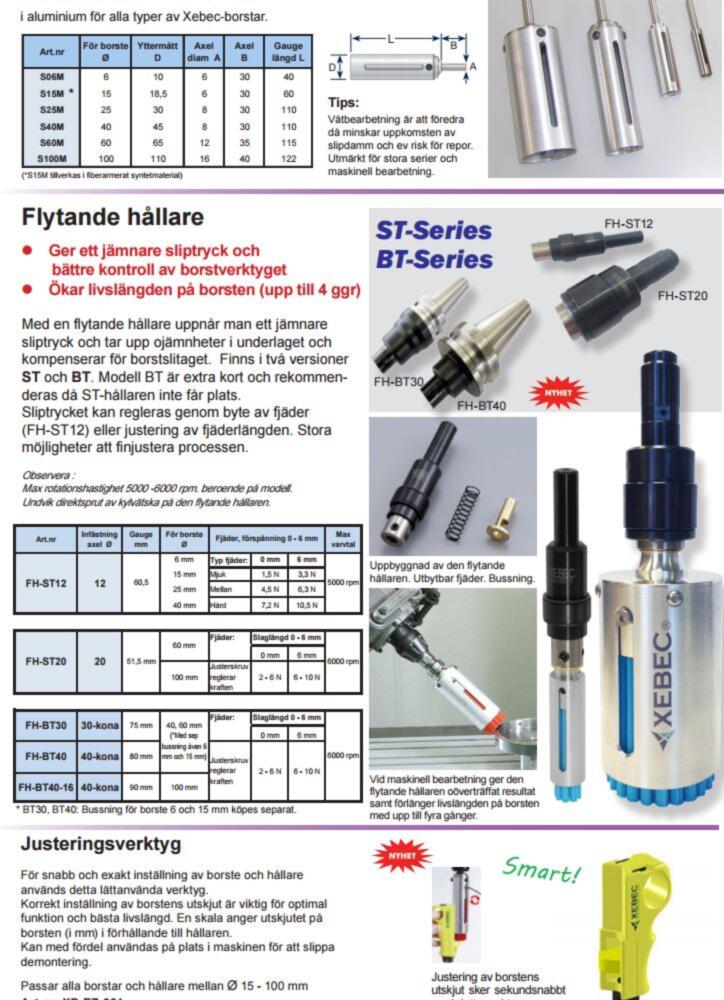 Xebec-borstarna för maskinell bearbetning finns i följande versioner optimerade för olika material och önskad gradning och finslipning: