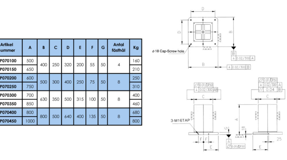 Kan specialtillverkas i avvikande mått upp till 1500 x 1500 mm.