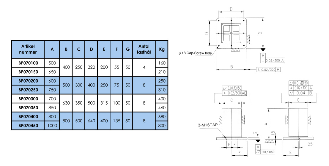 Kan även fås i höghållfast aluminium och heter då BPA07XXXX (lägg till A i artikelnyumret). Prisuppgift på begäran.