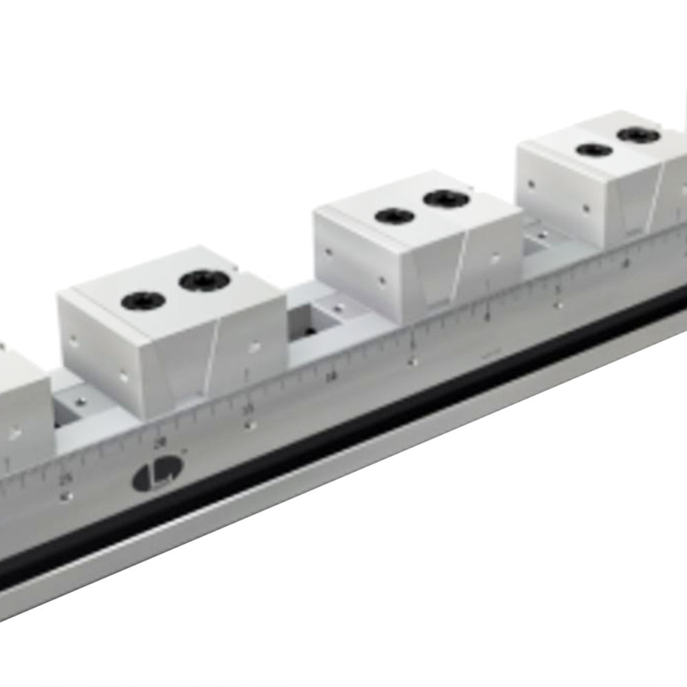 Levereras komplett med basskena, stopp- och spännbackar. Levereras