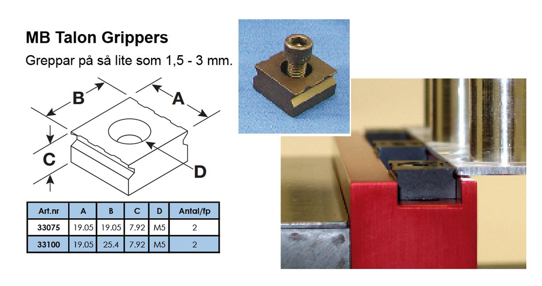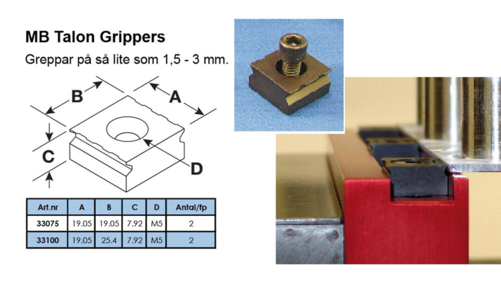 bearbetningar, med en fastspänning på så lite som 1.5- 3,0 mm.