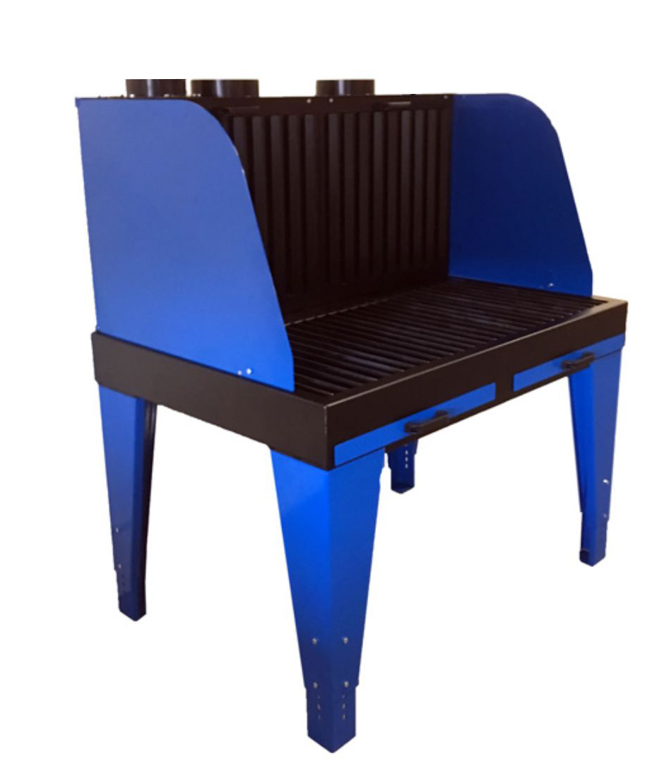 Vid grövre slipning bör Maxi-Mesas bordsyta bestå av 40x5mm raster med 50mm mellanrum. Större partiklar och gnistor faller då ned i uppsamlings lådorna som därefter lätt kan tömmas. Med ett mindre sug underifrån suger man bort gas och rök från varma och glödande partiklar som fallit ned. Baksuget och en eventuell utsugsarm för svetsrök suger bort rök, gas och damm som stiger uppåt pga värmen vid t.ex svetsning och slipning. Tack vare Plymoths unika spjäll kan luftmängden alltid regleras på bästa sätt mellan baksug, undersug och utsugs arm.
